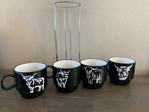 This 8oz stoneware stacking mug set is a must-have for any coffee or tea lover. With a charming Highland cow design and a sturdy metal stand, this set adds a touch of rustic whimsy to any kitchen. The stackable design also saves space and makes for easy storage. Perfect for entertaining or everyday use.